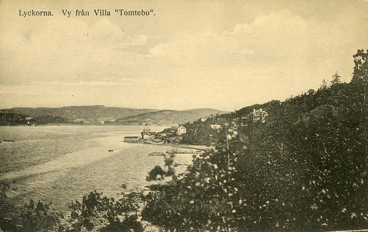 Enligt Bengt Lundins noteringar: "Lyckorna. Vy från villa "Tomtebo" mot badhuset".