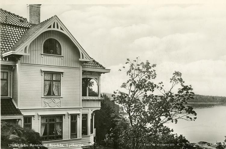 Enligt Bengt Lundins noteringar: "Utsikt från pensionatet Björkås, Lyckorna.