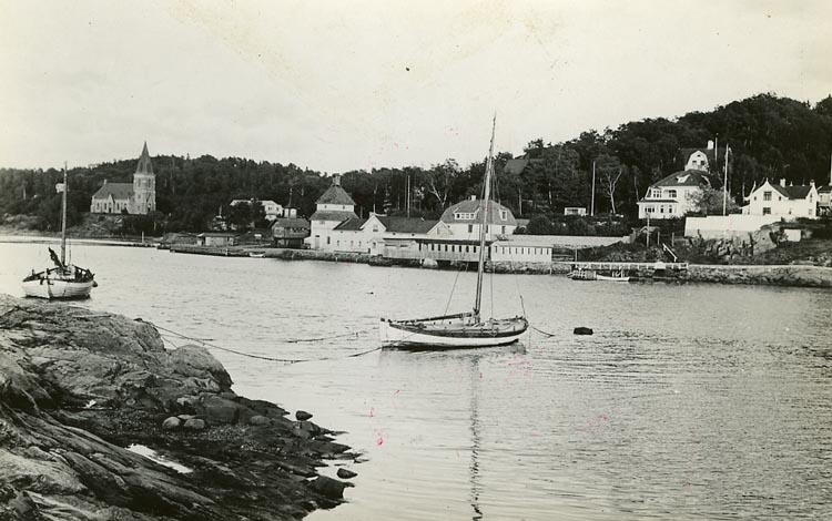 Enligt Bengt Lundins noteringar: "Ångbåtsbryggan med segelbåtar".