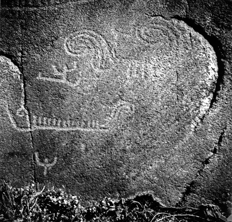 Enligt text: "Efter a 2142 Bottna sns fornm, n:r ? (Gisslegärde nr 12) Hällristning. Å Fredsjö foto 17/7 1947".