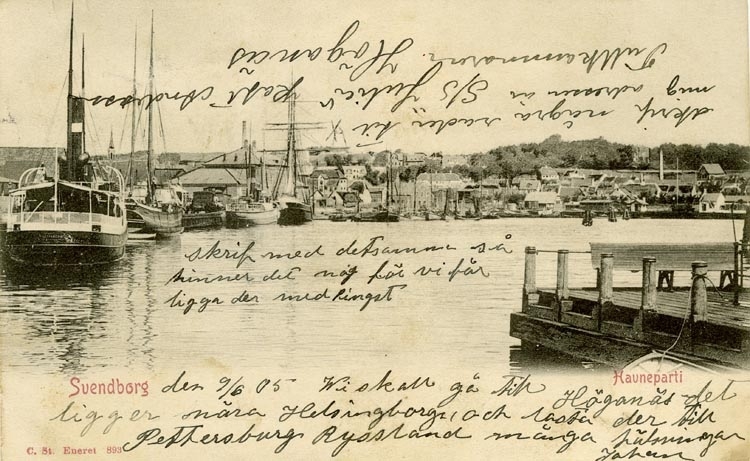 Notering på kortet: Svendborg. Havneparti.