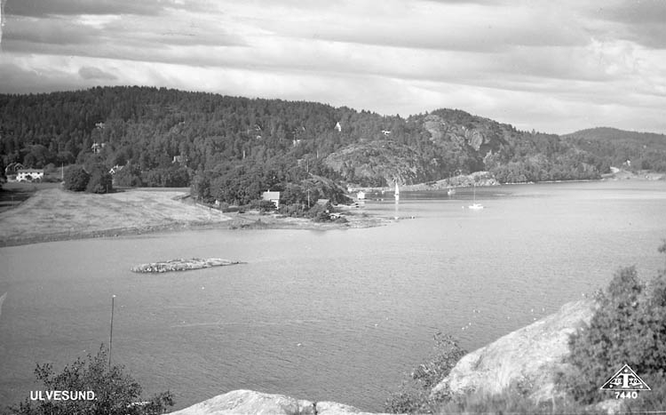 Enligt Bengt Lundins noteringar: "Ulvesund. Sundet med affär och väg. Vykort Li 7440 Foto BL 1272".