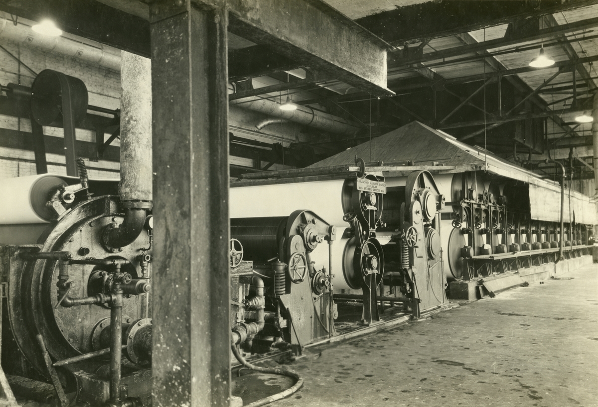 Torkmaskineri för pappersindustri, med våta delar typ Kamyr. Messrs Howard Smith, USA. Ur album för KMW. AB Karlstads Mekaniska Werkstad.