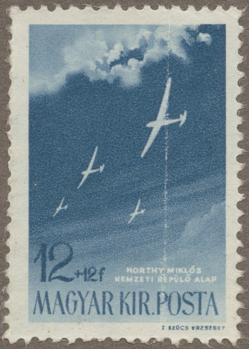 Frimärke från Ungern, 1942. Motiv av Segelflygning, Ungern 1942 -Till förmån för Miklos Horthys Nationella Luftfarts Fond-