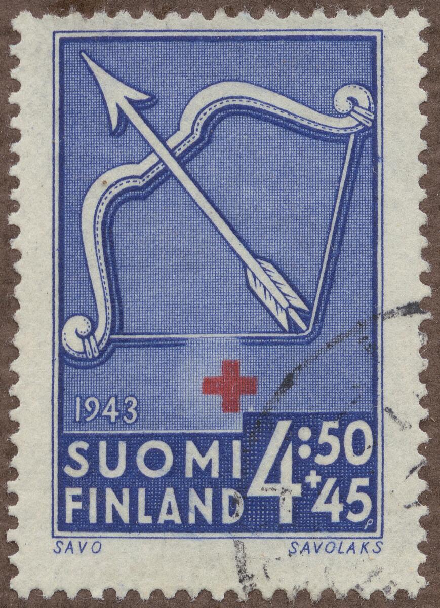 Frimärke från Finland, 1943. Motiv av Båge med pil Savolaks' vapen