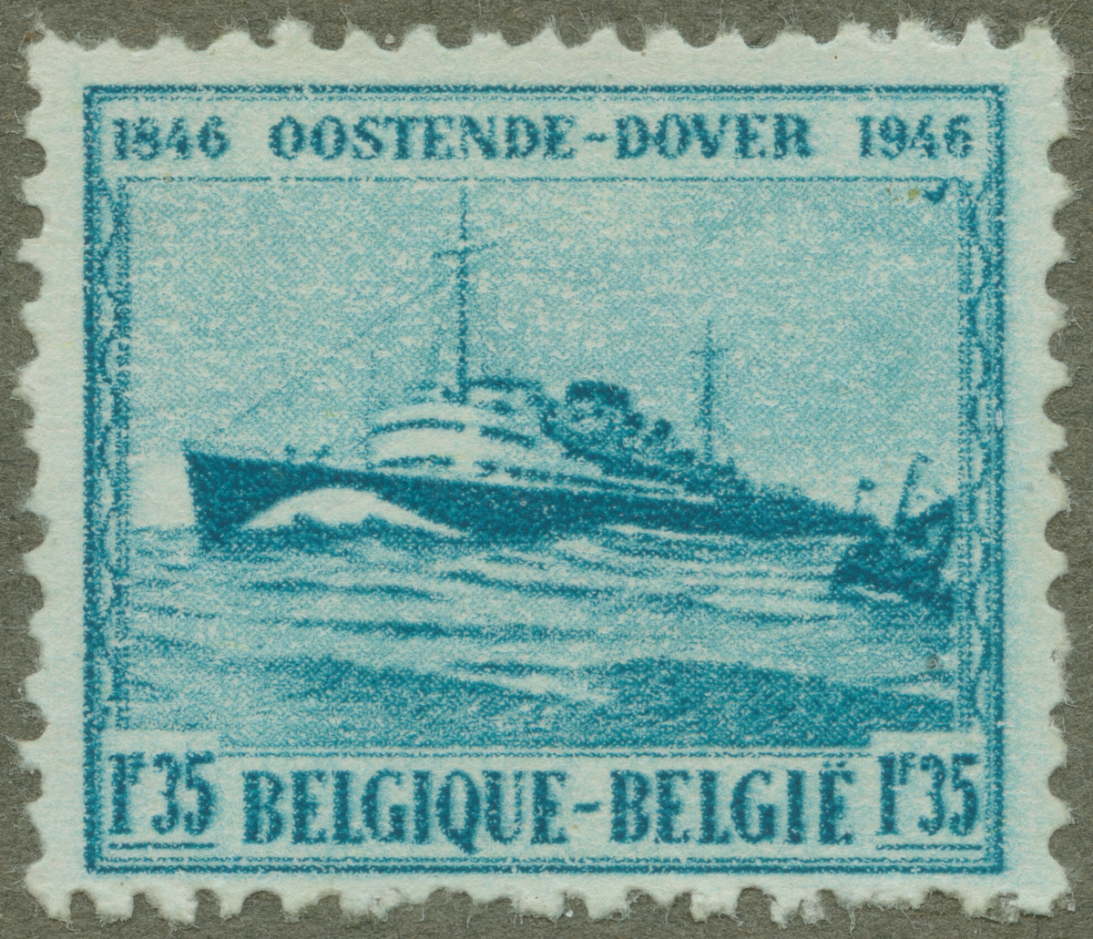 Frimärke från Belgien, 1946. Motiv av Postförande ångfartyg. 100-årsminne av linjen Ostende-Dover. 1846-1946.