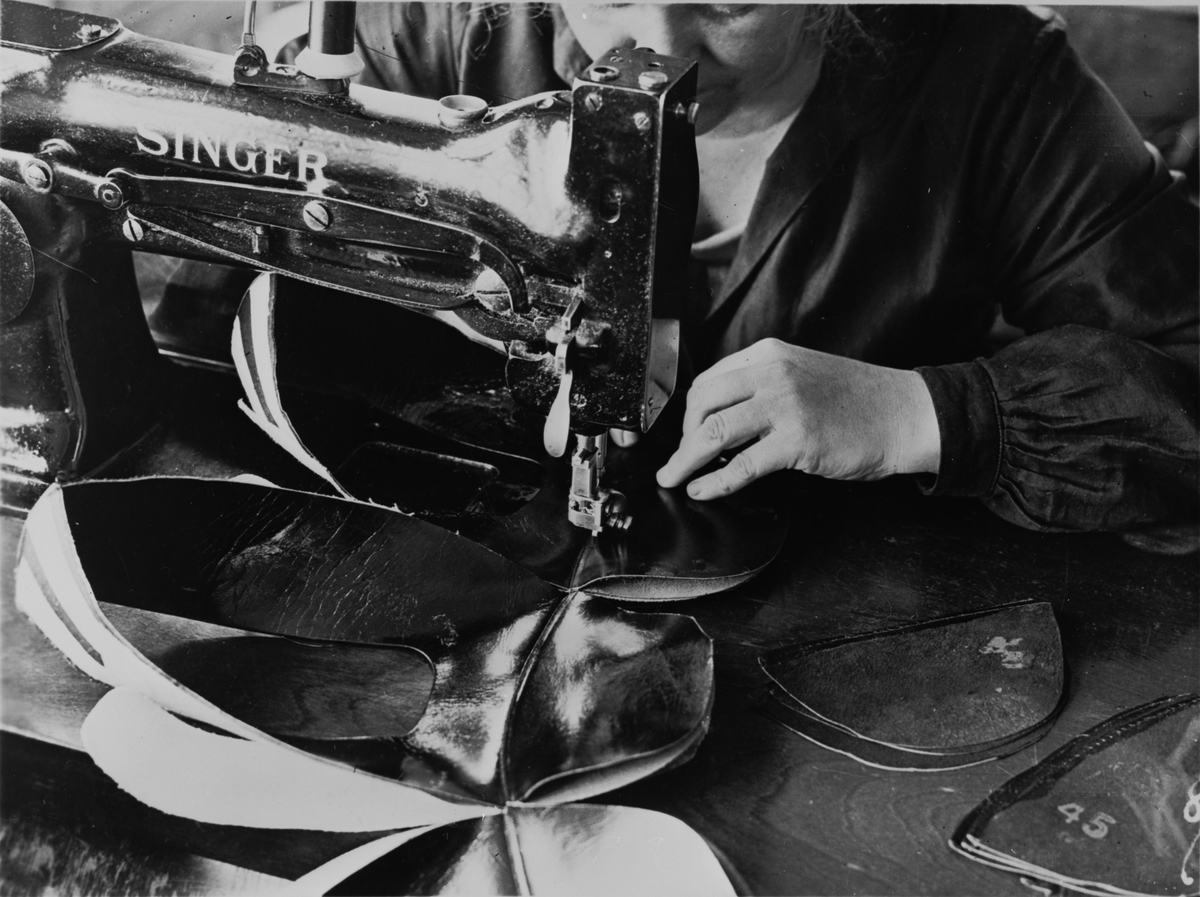 Ovanlädrets olika delar nåtlas - sys - tillsammans med natursilke.