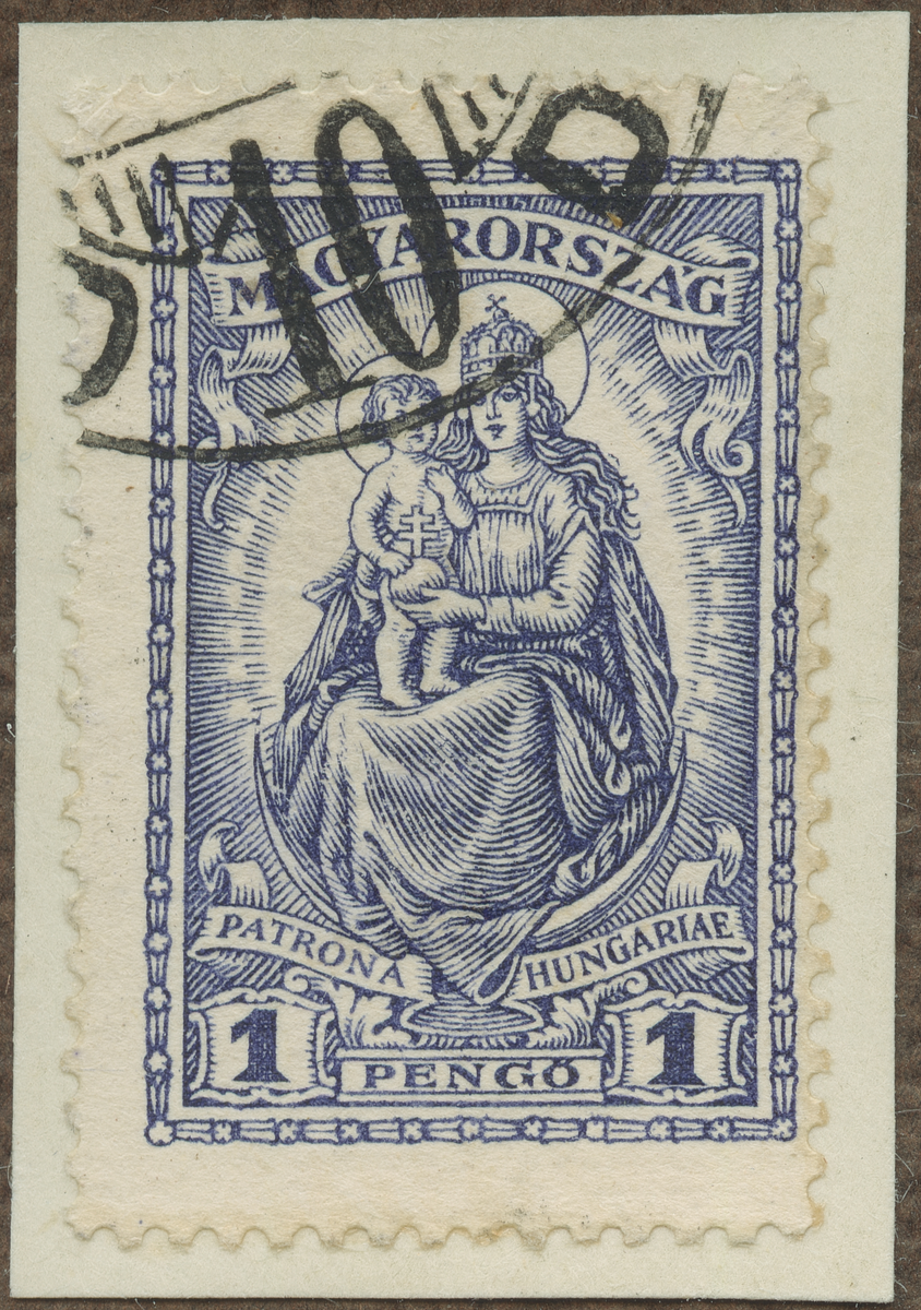 Frimärke från Ungern, 1926. Motiv av Maria med barnet: -Patrona Hungariae- Ungerns skyddshelgon.