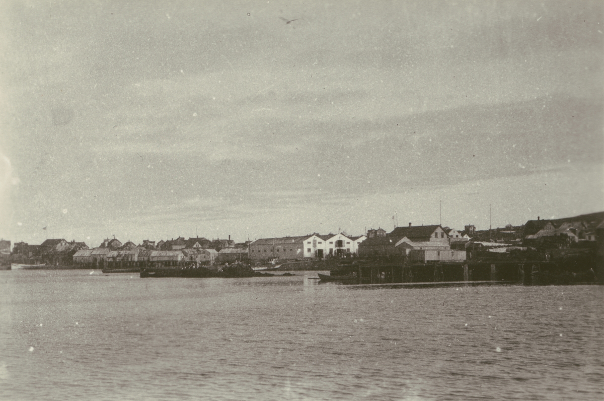 Fotografi från Albin Ahrenbergs resa till Grönland 1929. Vy över Västmannaöarna söder om Island.