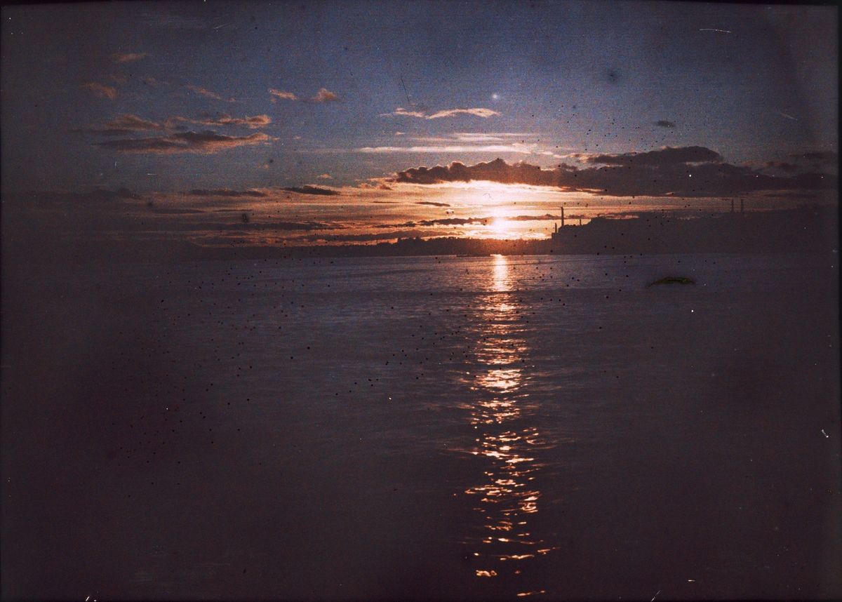 Lumières-autokrom. Solnedgång vid Furuvik (Gävle). Fotograferad i juni 1911 med f/12, 1 sek. exponering.