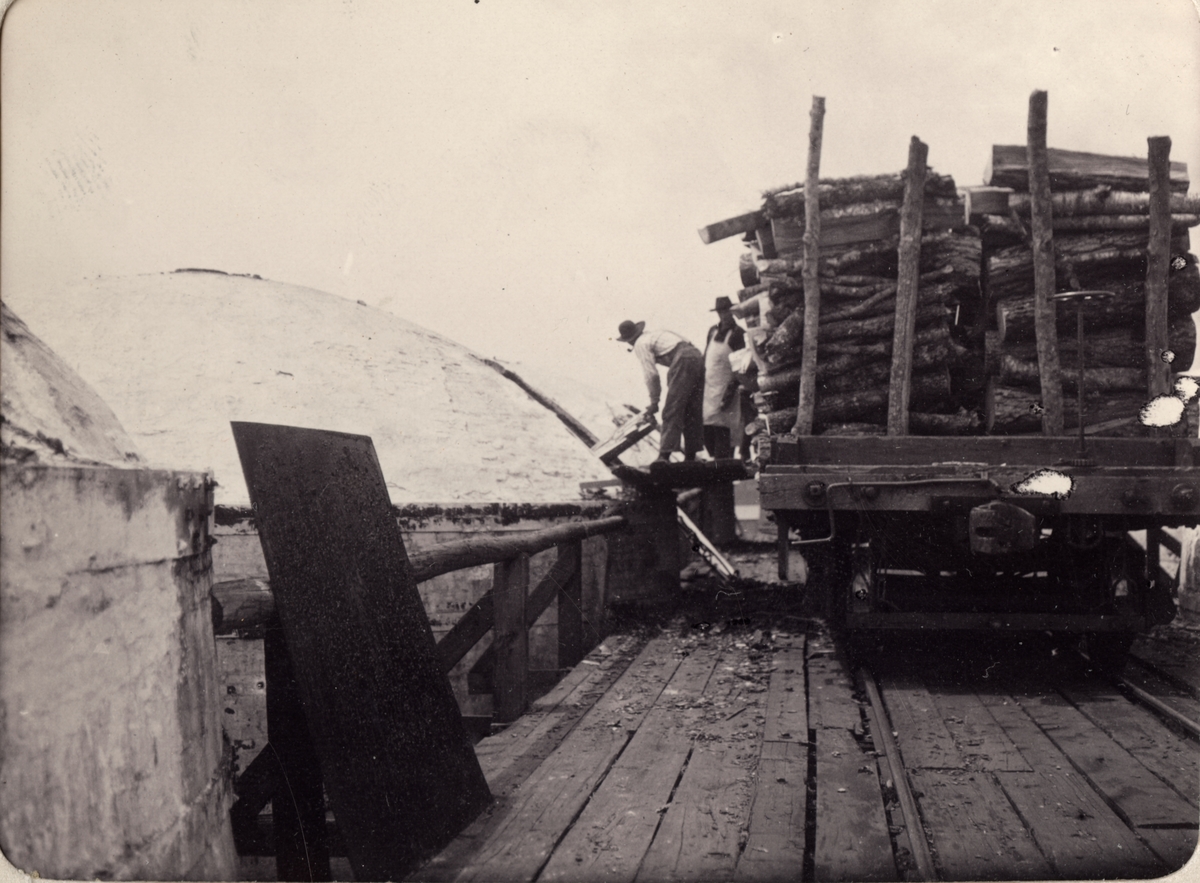 Bikup-kolugnar och hytta. (Michigan). Ur album Fotografier från amerikanska Träkolshyttor 1905/1906.