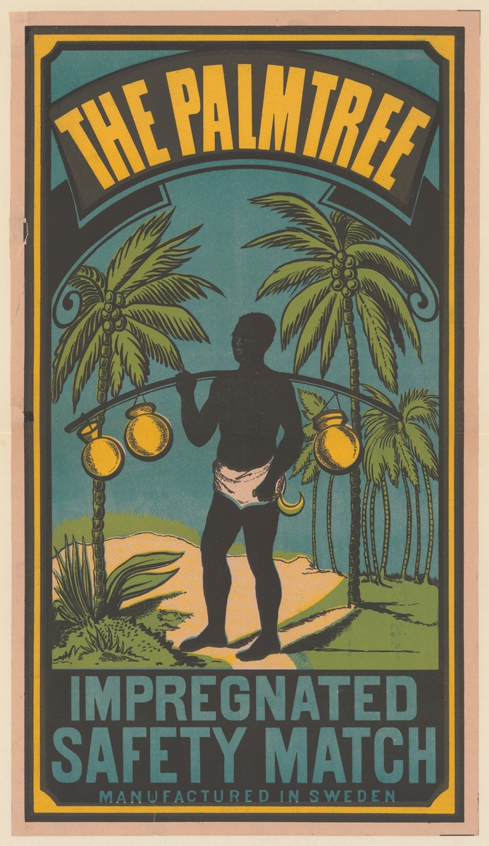 Titel: Etiketter för tändsticksaskar, från Svenskt Industri- och Handelsmuseum. Geografi. The Palmtree.