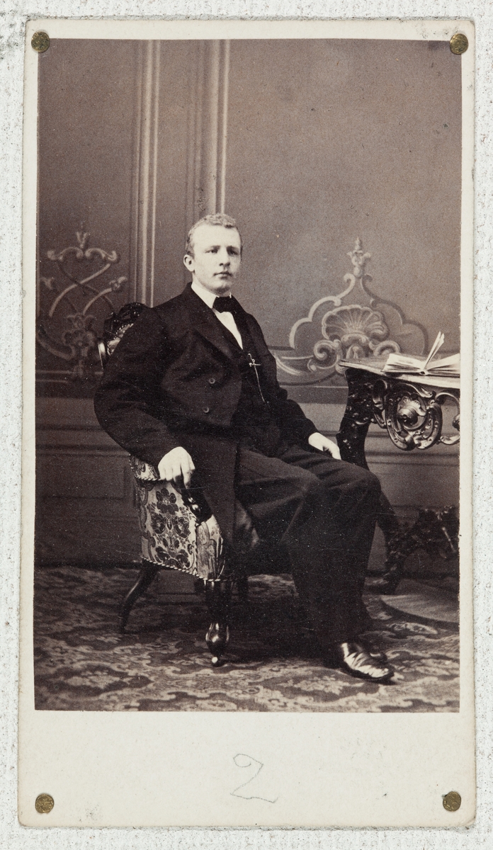 Undervisningsmaterial. Exempel på äldre fotografiska förfaranden. Porträtt av okänd man. Visitkort.