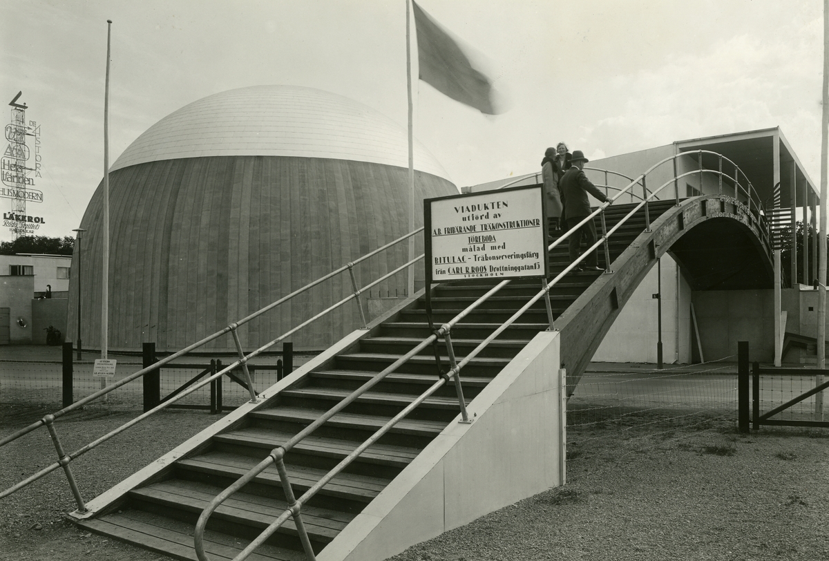 Bro och planetarium vid Stockholmsutställningen 1930. Tillverkade av AB Fribärande Träkonstruktioner i Töreboda.