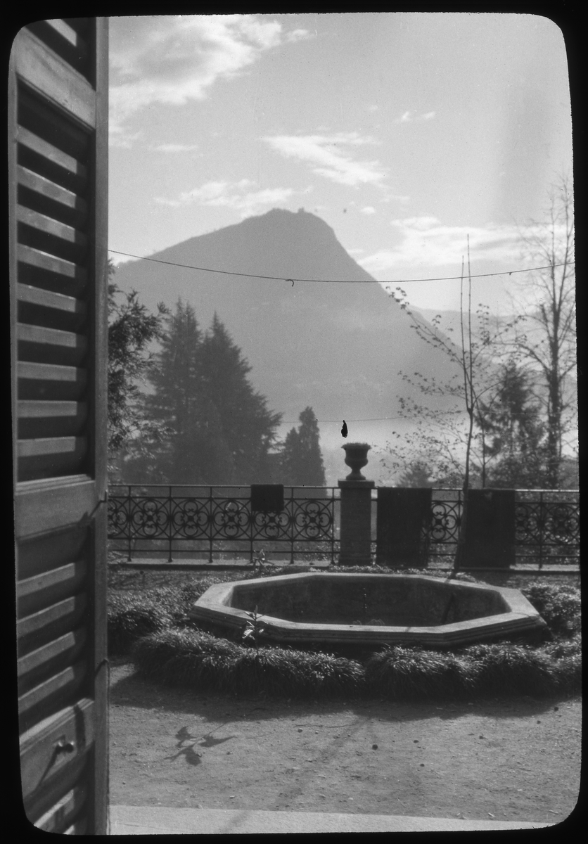 Skioptikonbild från institutionen för fotografi vid Kungliga Tekniska Högskolan. Bilden är troligen tagen av John Hertzberg under en resa i Europa. Hertzberg blev docent i fotografi 1921vid Kungliga Tekniska Högskolan i Stockholm. Terass.