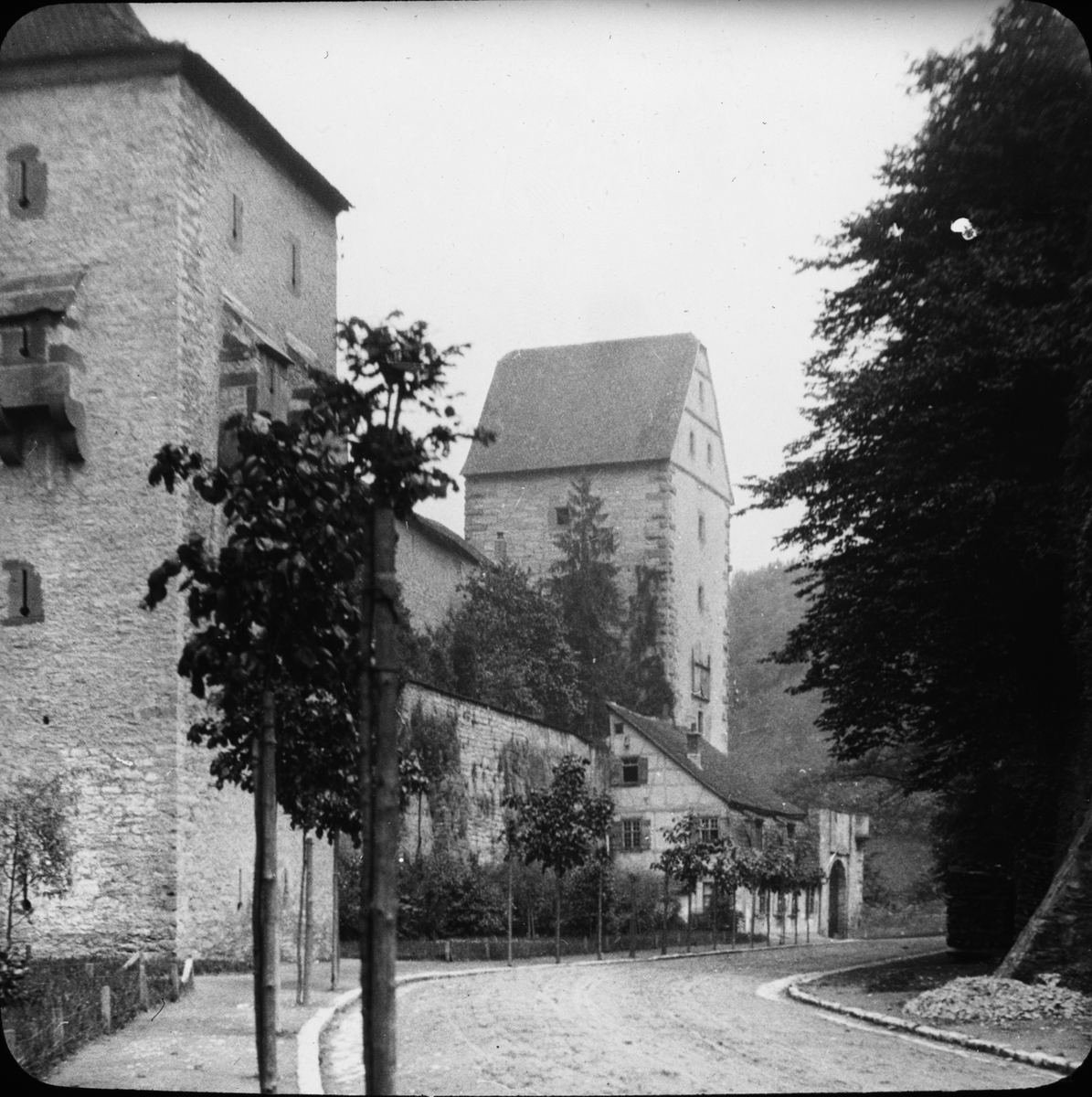 Skioptikonbild med motiv av Langenfelder Tor, Schwäbisch Hall.