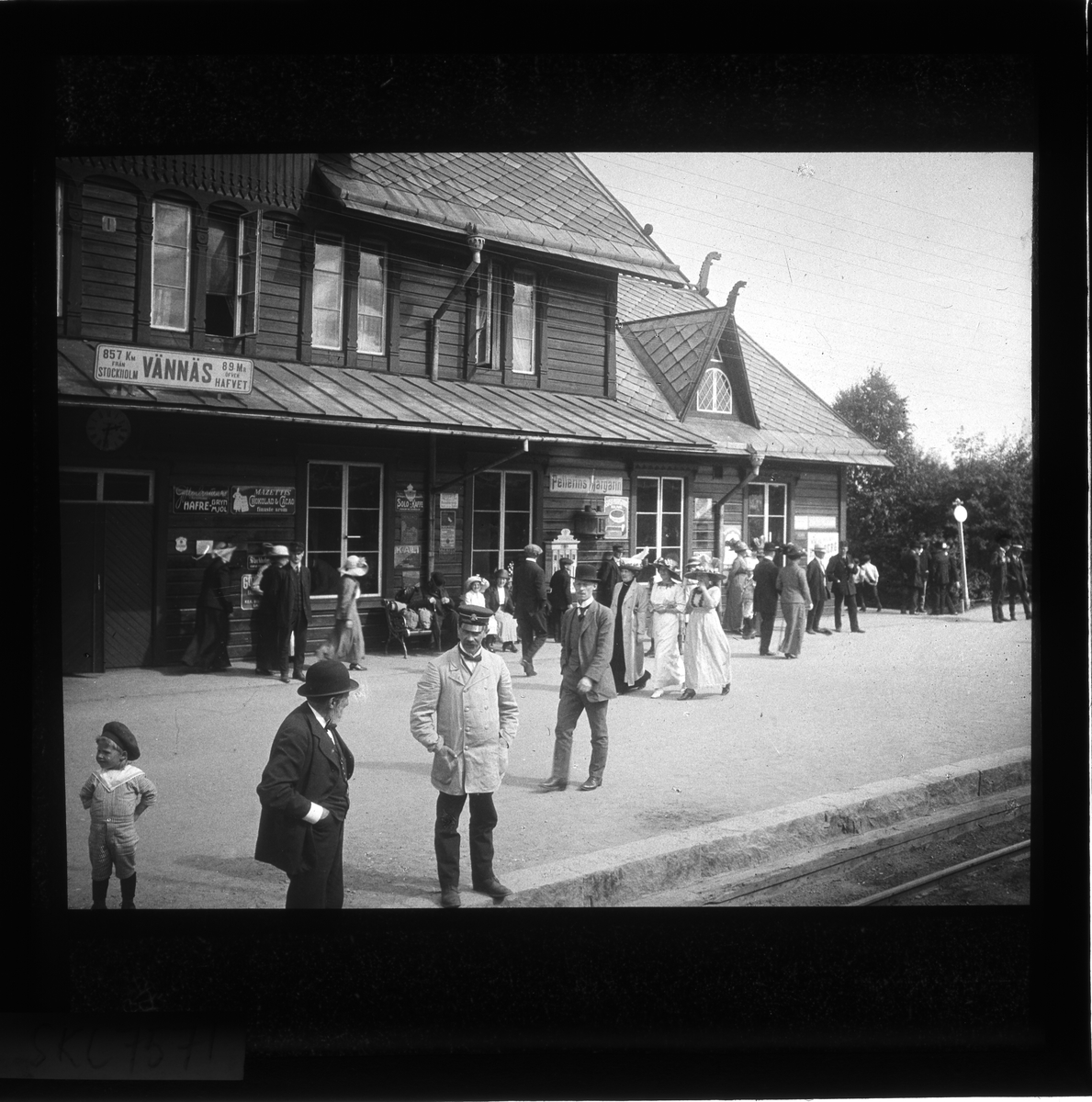 Vännäs tågstation. Troligen motiv taget av John Hertzberg på resa runt i Sverige kring sekelskiftet 1900.