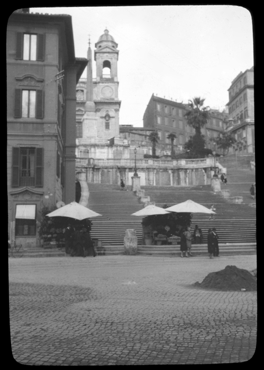 Skioptikonbild från institutionen för fotografi vid Kungliga Tekniska Högskolan. Motiv föreställande trappa. Bilden är troligen tagen av John Hertzberg under en resa i Europa.