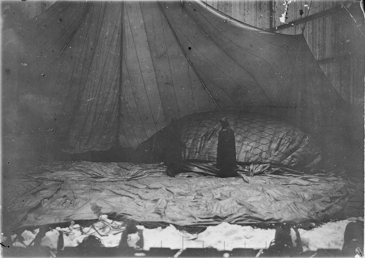 Ballongen Örnen börjar fyllas. Andrées polarexpedition, 1897.