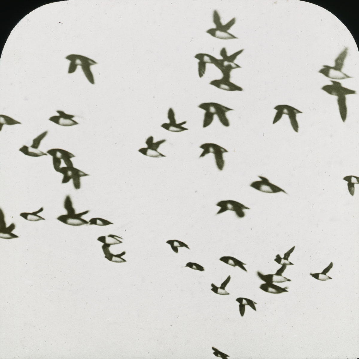 Fotografi från expedition till Spetsbergen. Motiv av fågelflock i himlen.