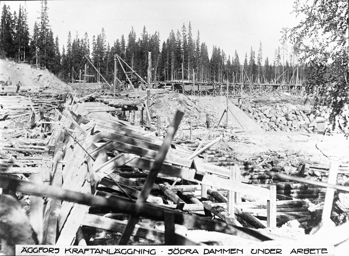 Byggherre: Byggnadsaktiebolaget Contractor, Stockholm. Södra dammen under arbete.