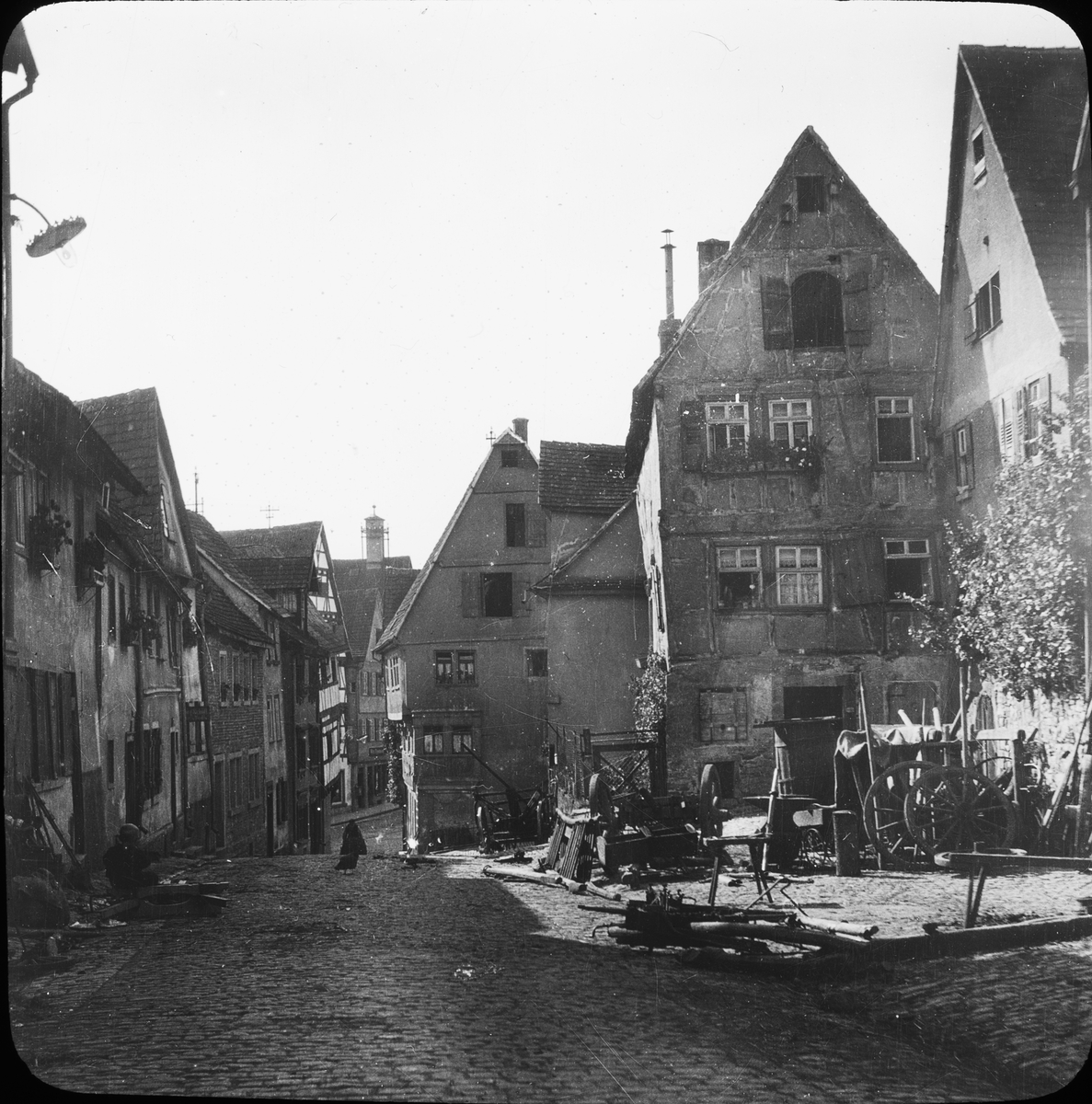 Skioptikonbild med motiv från marknad eller gata i Horb am Neckar.