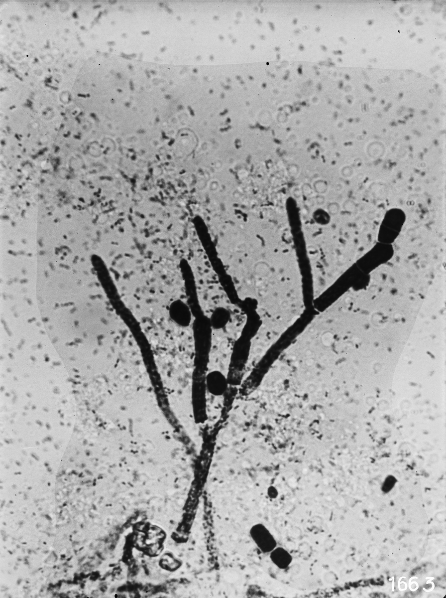 Mikrofotografering av mjölk. Mjölk förvarad 1 vecka i 20°C. Prov nr. 36.