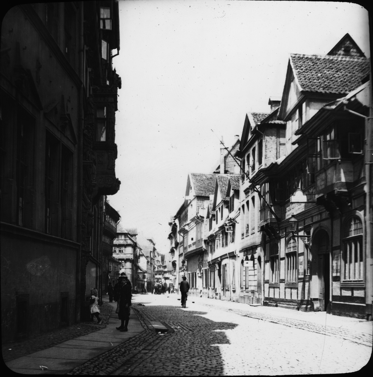 Skioptikonbild med motiv från gatan Reichsstrasse i Braunschweig.