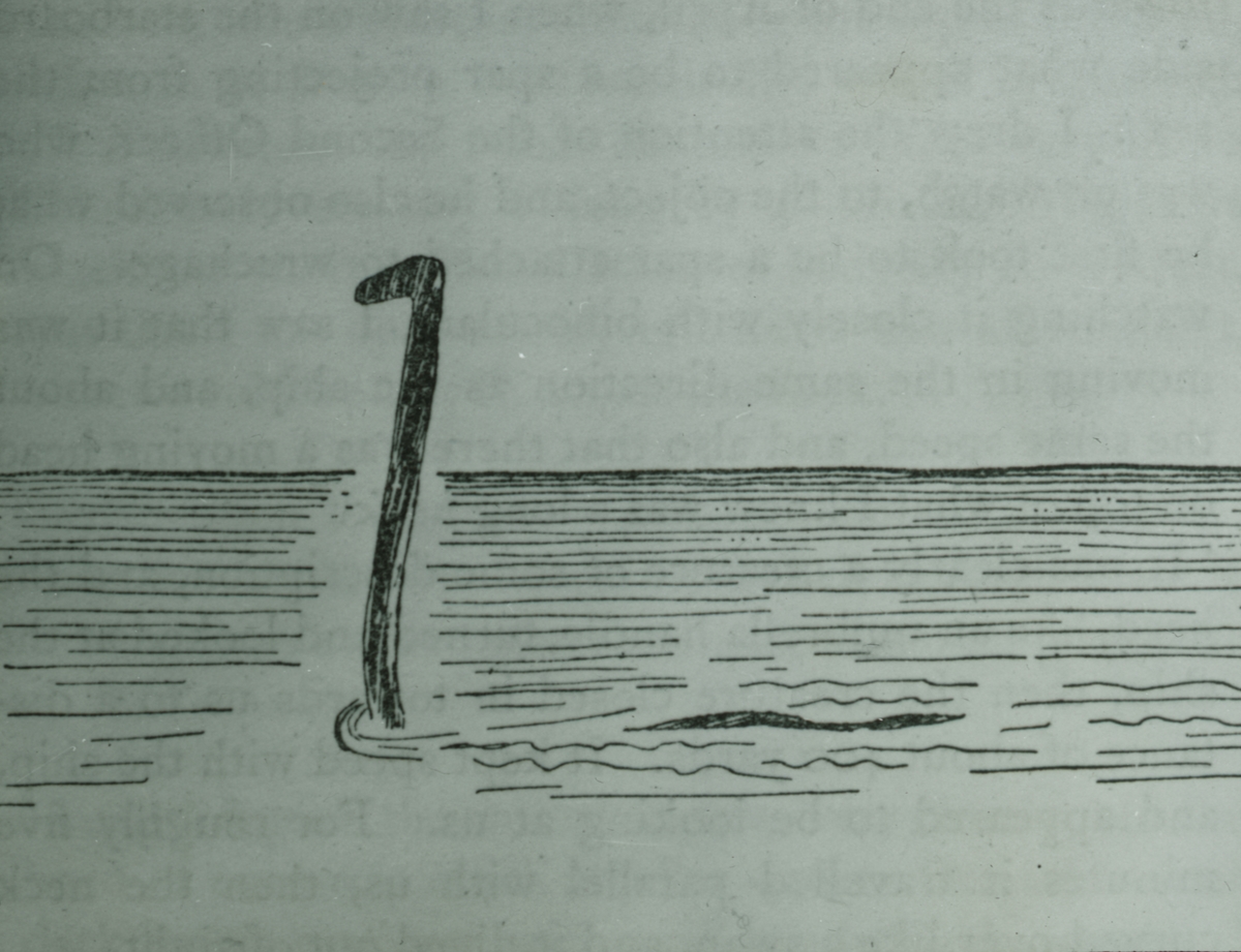 Fotografi från Spetsbergen. Teckning med motiv av sjöodjur.