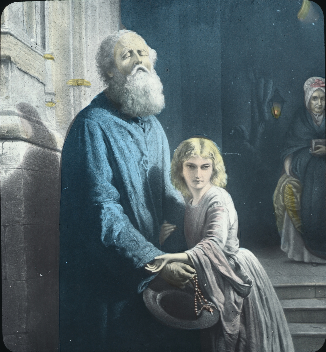 Titel: Kolorerad skioptikonbild med religiöst motiv.