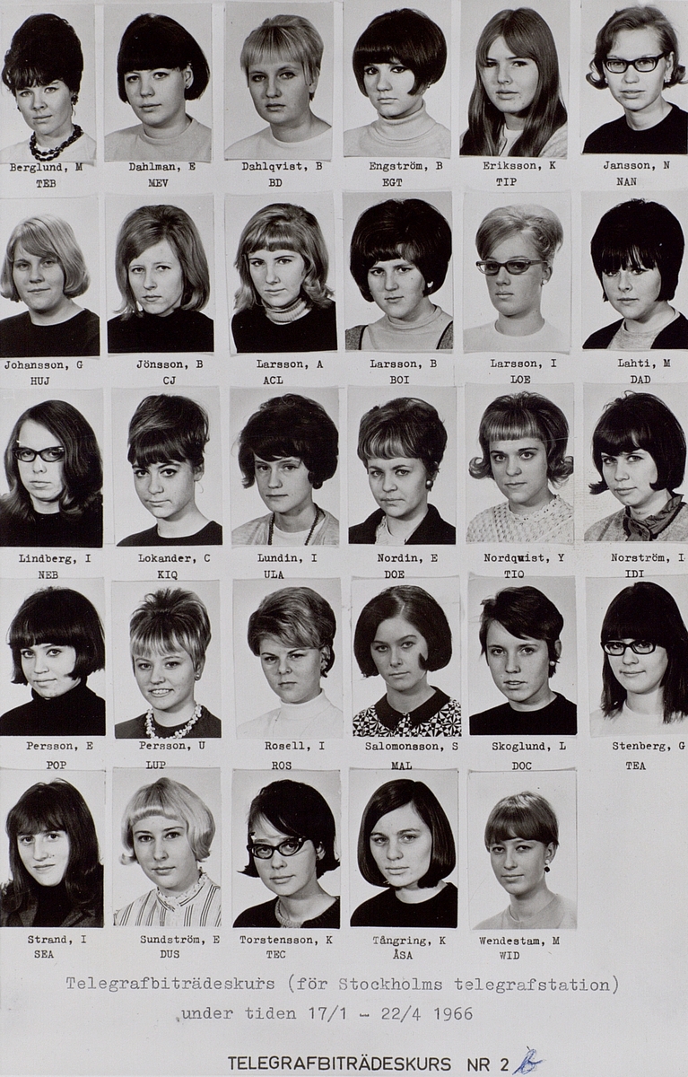 Telegrafbiträdes-kurs. Stockholm. För Stockholms telegrafstation under tiden 17/1 - 22/4 1966.
