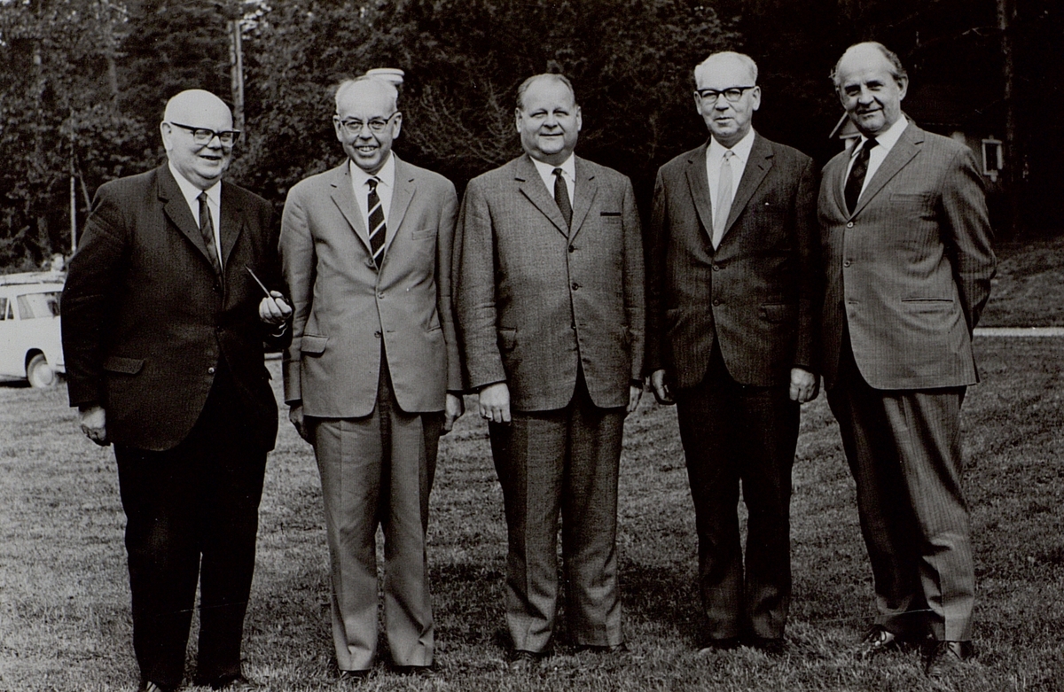 De Nordiska generaldirektörerna i Aavaranta juni 1967. L. Larsen, G. Pedersen, O. Salvila, G. Briem och B. Bjurel.