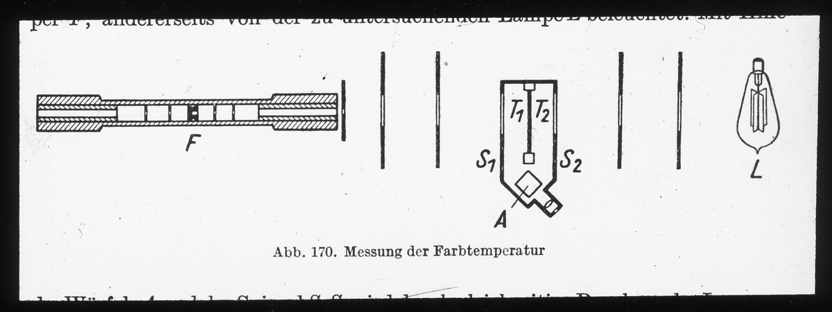 Skioptikonbild från Institutionen för fotografi vid Kungliga Tekniska Högskolan. Använd av professor Helmer Bäckström som föreläsningsmaterial. Bäckström var Sveriges första professor i fotografi vid Kungliga Tekniska Högskolan i Stockholm 1948-1958.