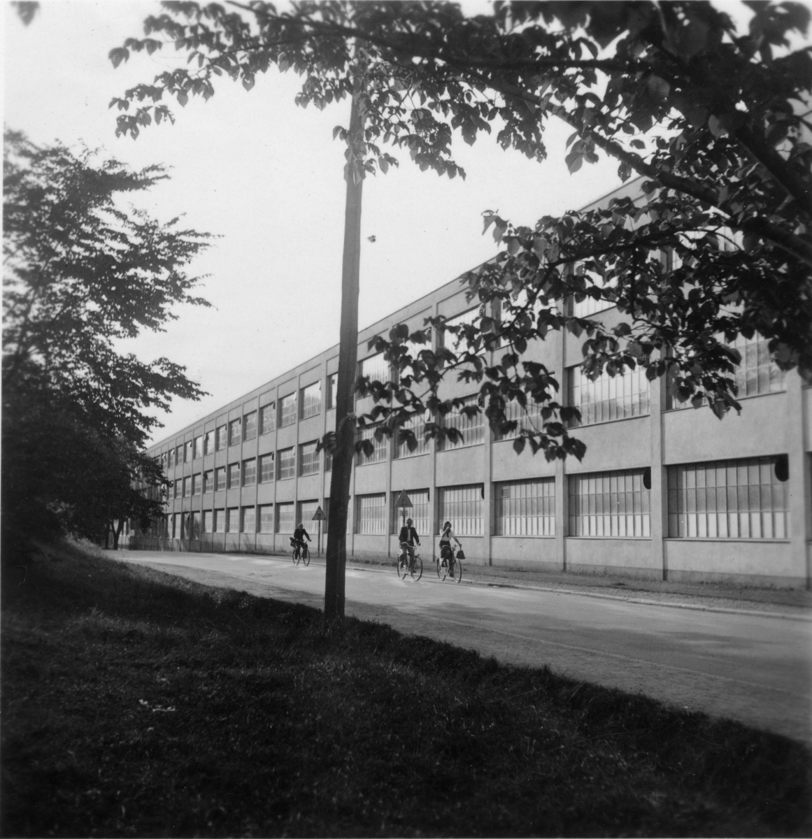 Finspongs metallverk. Arbetare på cykel påväg från De Geerverkstaden.