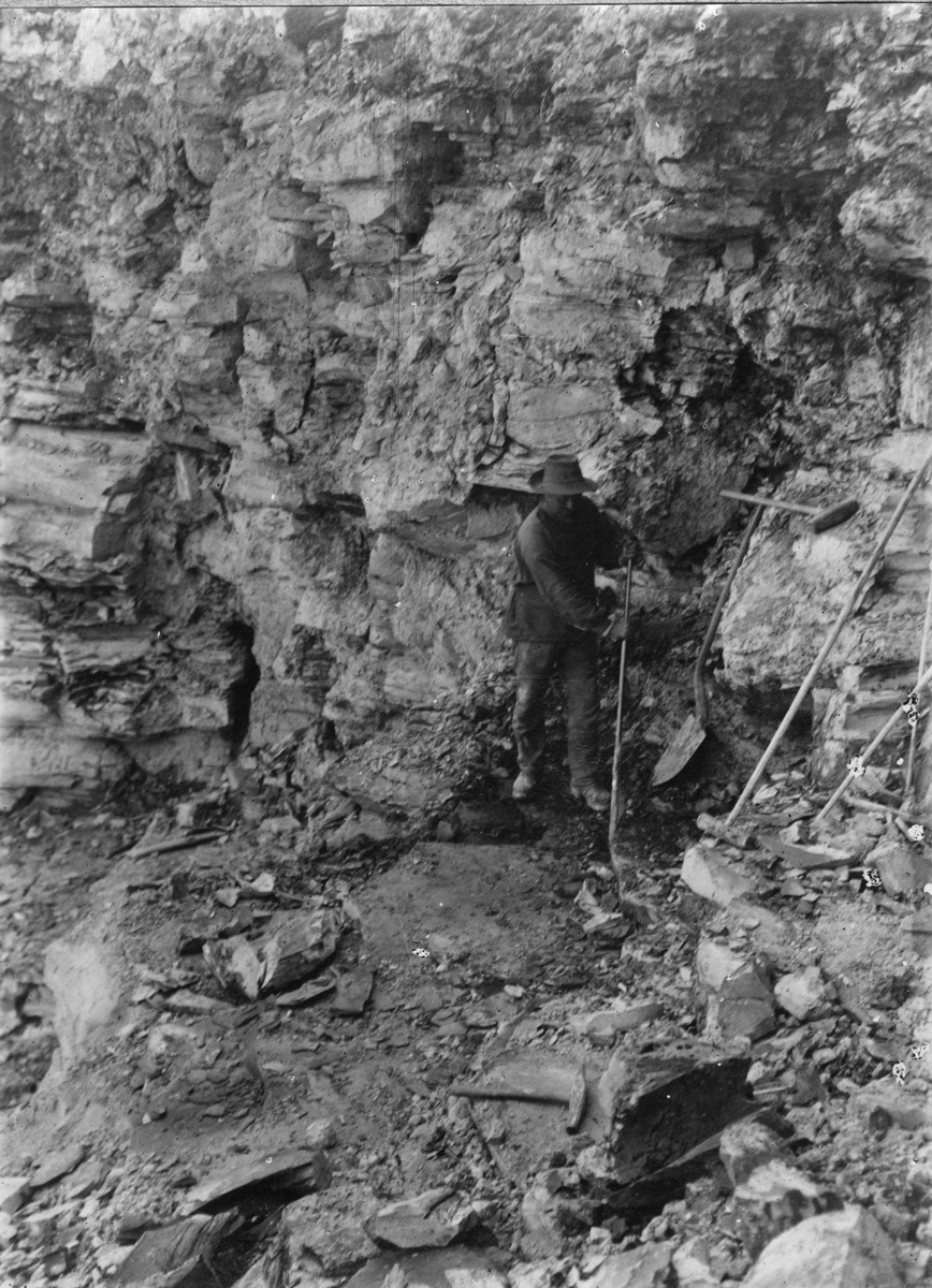 Brytning av skiffer till kalkbränning. Latorps bruk.