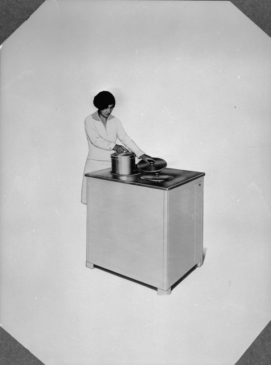 Kylskåp med två löstagbara runda behållare? En kvinnlig demonstratör.