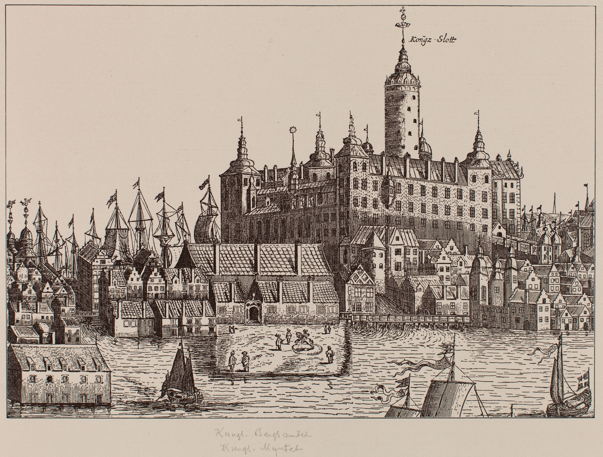 Reproduktion. Del av Johan Sasses "Stockholmia" från 1652. Originalet finns på Uppsala Universitetsbibliotek.