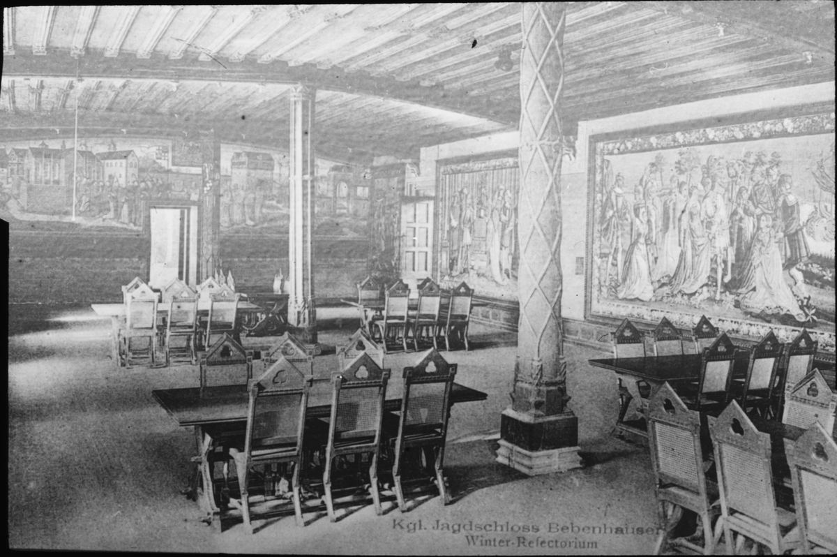 Skioptikonbild, vykort, "Kgl. Jagdschloss Bebenhauser, Winter Refectorium".