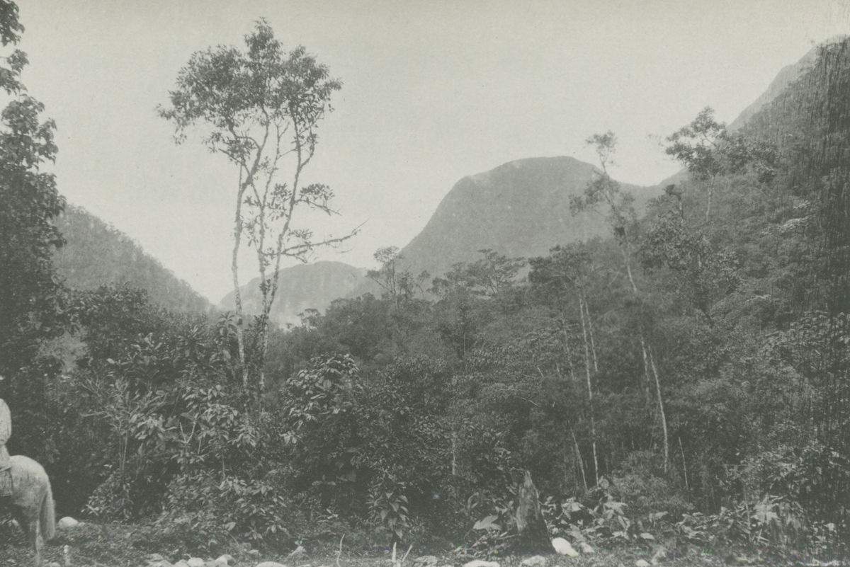 Fotografi från expedition till Peru 1920. Vy över djungel och berg.