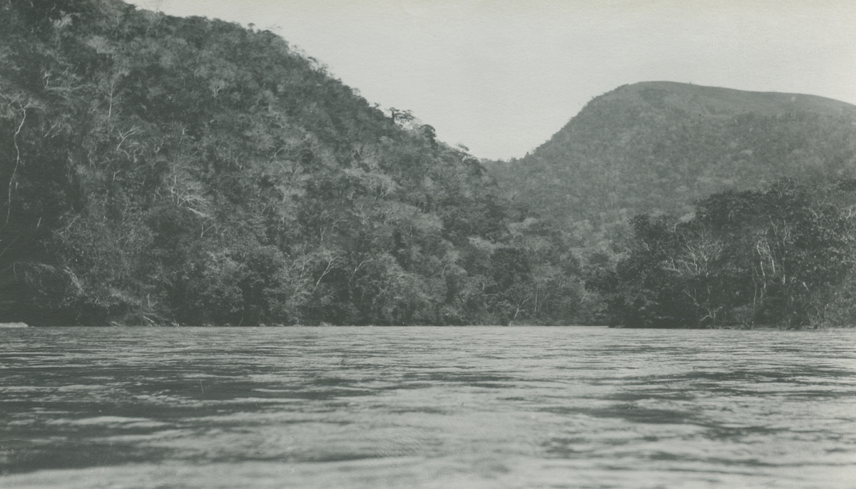 Fotografi från expedition till Peru 1920. Motiv av flod och tätbevuxet djungellandskap.