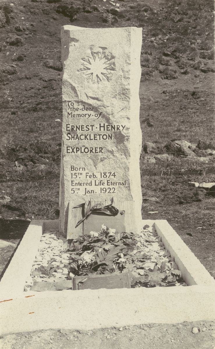 Bild från expedition i Antarktisområdet. Motiv av Ernest Shackletons gravmonument på Grytvikens kyrkogård.