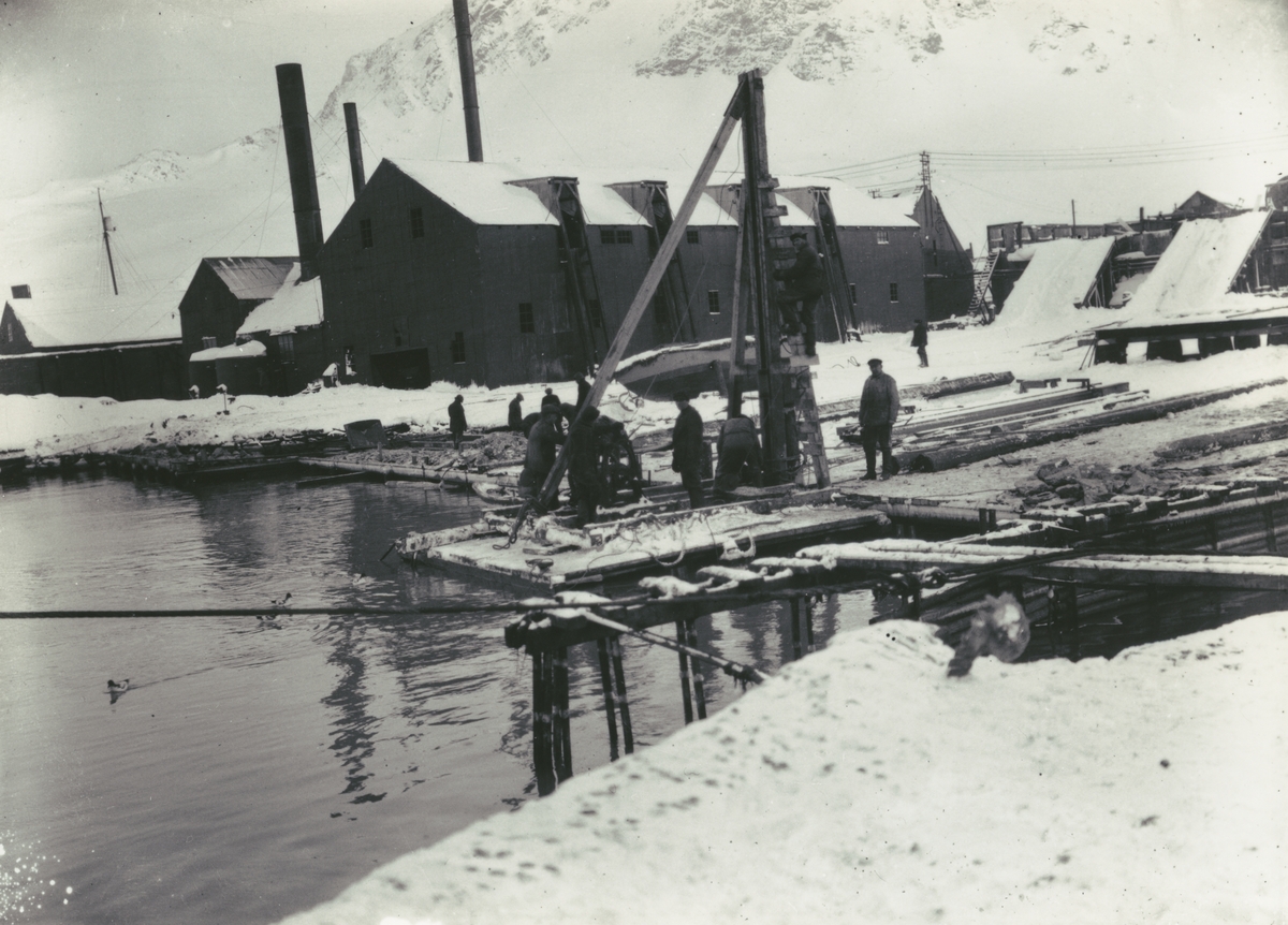 Bild från expedition i Antarktisområdet. Motiv av hamn och hamnarbetare i Sydgeorgien.
