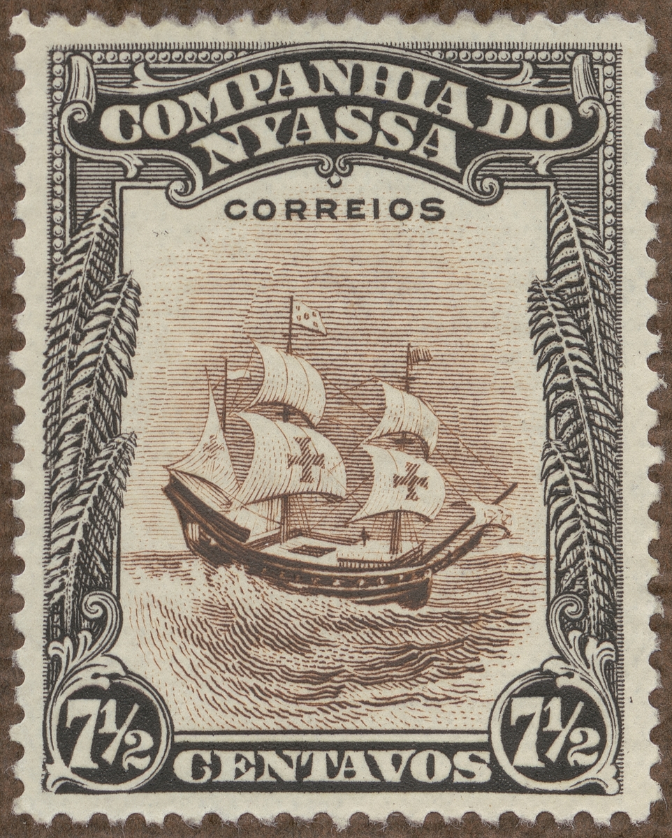 Frimärke från Nyasaland, 1921. Motiv av Karavell: Vasco Da Gama:s flaggskepp "San Gabriel"