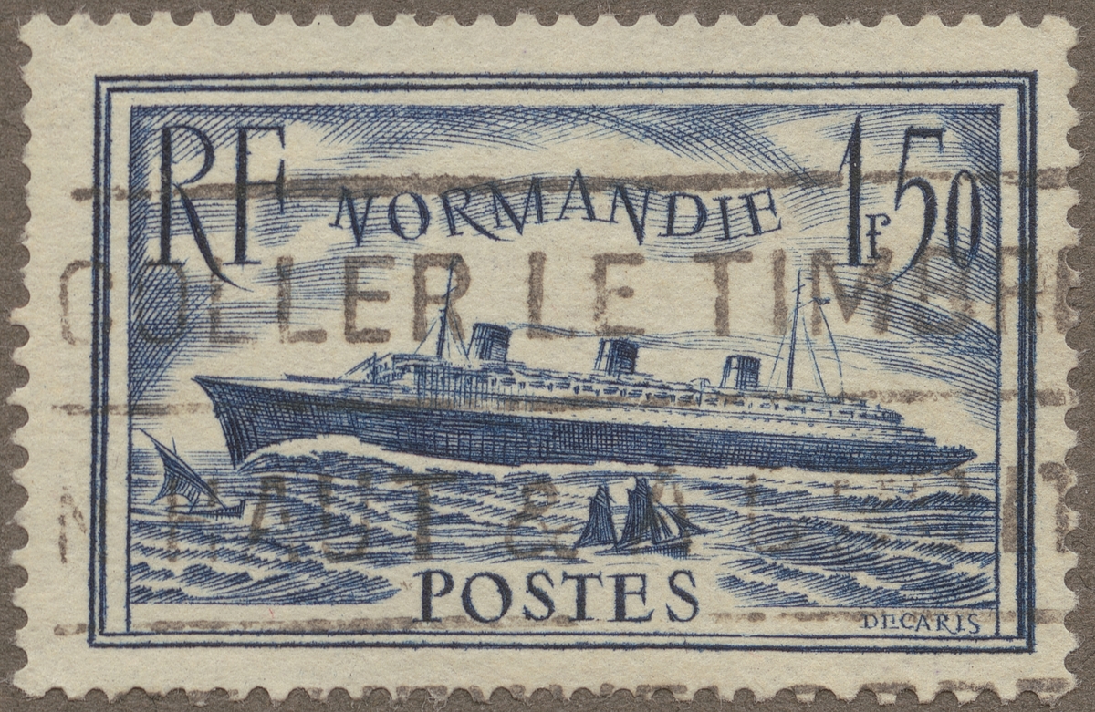 Frimärke från Frankrike, 1935. Motiv av Den franska Atlantångaren "Normandie".