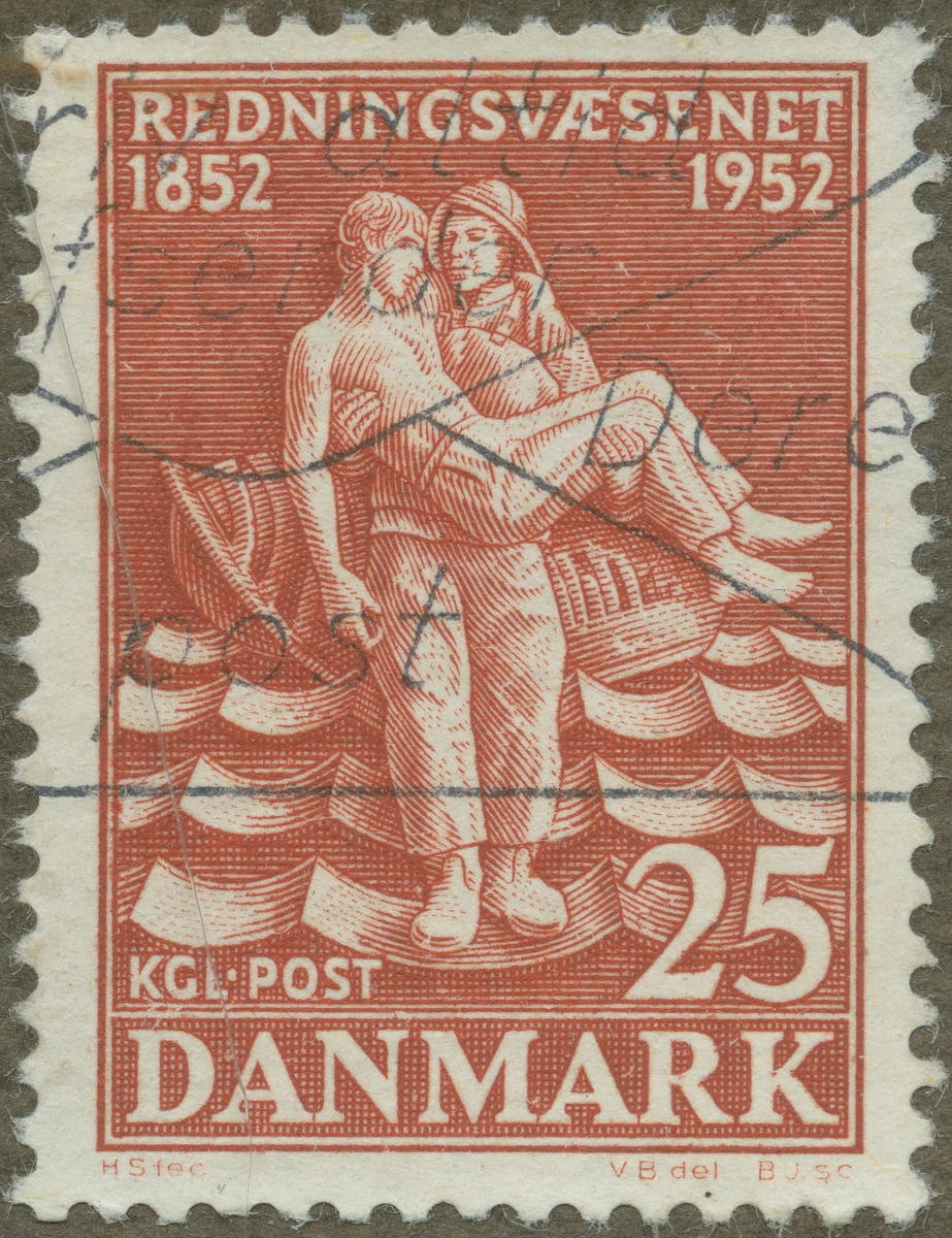 Frimärke från Danmark, 1952. Motiv av Symbol för sjöräddningsväsendet i Danmark 100-årsminne: 1852-1952