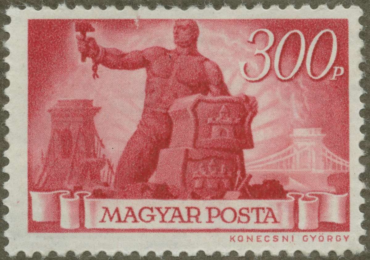 Frimärke från Ungarn, 1945. Motiv av Symbol för Donaubrons återställande i brukbart skick