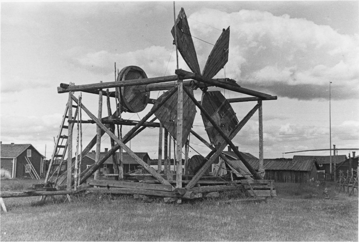 Vinddriven spånhyvel vid Vojakkola by, nedre Tornedalen, strax norr om Haparanda.
