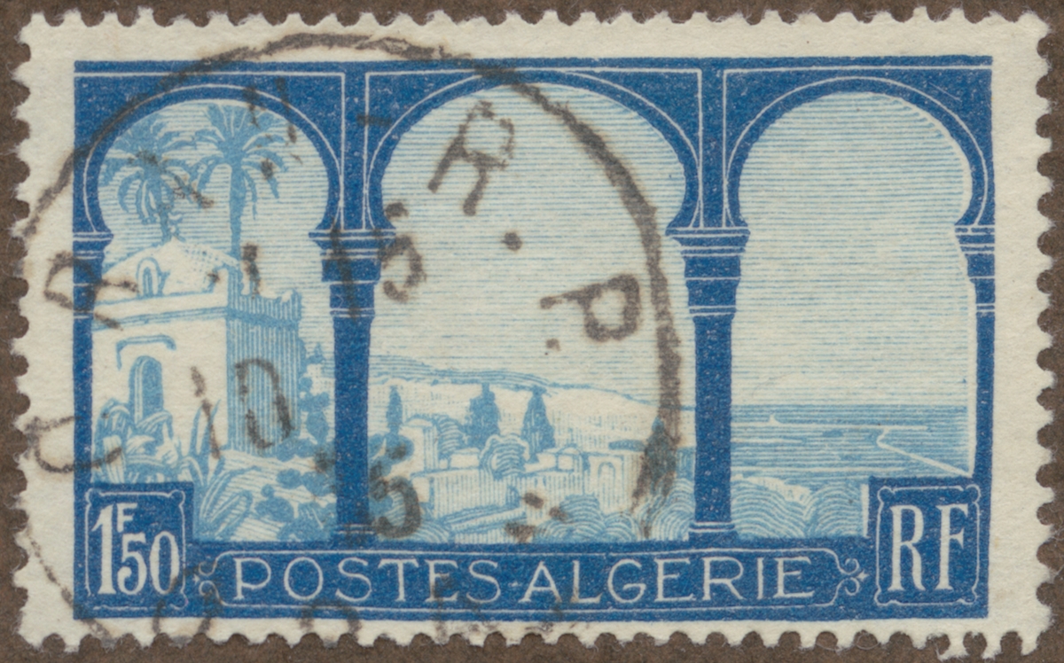 Frimärke från Franska Algeriet, 1927. Motiv av Konunga mausoleum (s.k."marabout") över Sidi Yacoub