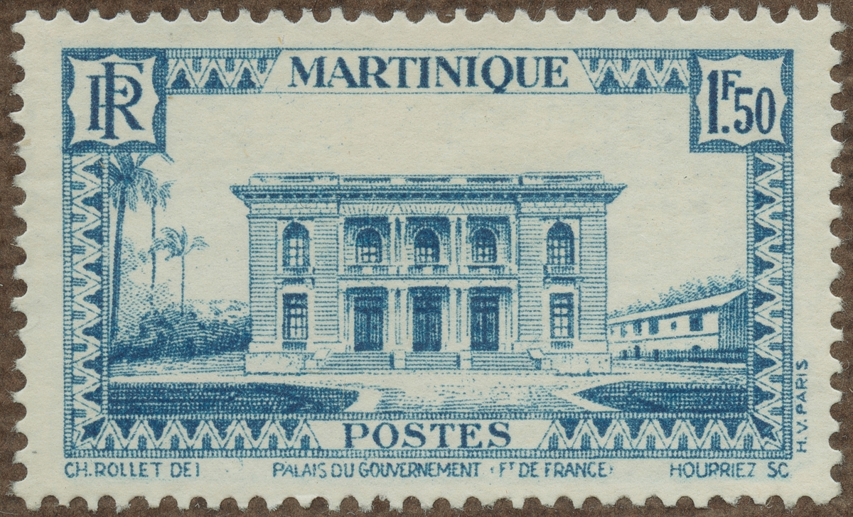 Frimärke från Martinique, 1931. Motiv av Guvernementshuset: Till Kolonialutställningen