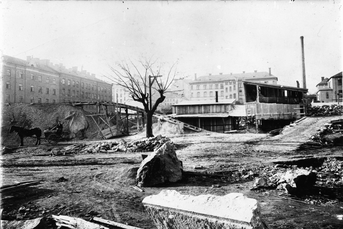 Byggherre: Byggnadsaktiebolaget Contractor, Stockholm. Betongblandningsverk. Polishusets grund.